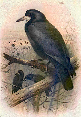 Modern writings: Books should be reasonably easy to find, even if officially out of print. These are usually still within copyright period, by living authors, published by existing publishers. These books will be described and short extracts quoted, but only for purposes of fair review. Please buy the printed book to read the rest of it. If it has an ISBN number, you should be able to quote that to almost any bookshop, and have them order it for you. Old writings: Long out of print: collector's books. May be expensive, but not necessarily impossible to find. Try Antiquarian Booksellers. Ask for them to keep a beady eye out. I have freely transcribed all corvo-relevant parts of those texts that I believe are copyright expired. I do this without gainful intent, as a service to Corvo-kind. And for the respectful memory of those beloved-few writers who have studied the Corvidae in olden-times. That they shall be not forgot. |