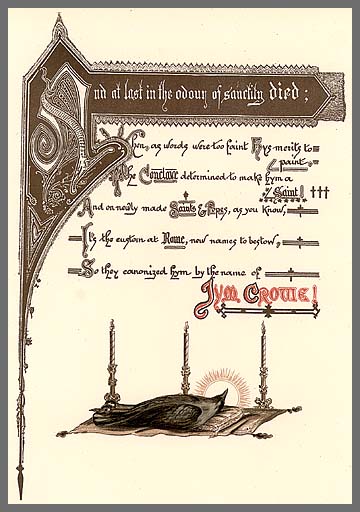 To people who have gifted me with books, or pointed out sources, or accompanied me on interminable expeditions to Antiquarian Bookshops, often pouncing with glinty eyne straight to the best find of the day. Corvophile netfriends, especially those Erudite Ravens: Black, NightShade, Damask, Azrael, Zanangel, and that Crafty Crow: Soma. Cheer-caws for the Seven Secretive Corvids! Keen Ornithologists: the observers of precision and wit, and those who will always try to help any bird found injured. Especially to Laurence Jackson, JayDee, and other irregulars of the excellent and informative UK Birds newsgroup. Kym the Magic Magpie (a Morrigan in disguise, I suspect), for turning of net-stones and always successfully bidding for Shinies-at-Auction. "Chakka-chak-CHAK!!!" [to a loud techno-beat] Andrya the Booksome Jay for help in guesstimating the printing-era of those tomes who bear no flyleaf date. This gaudy and flittersome creature is part of a brilliant Party-scene too! Well, what would you expect from a plurality of Jays? Stewart, who I reckon is a bit of a Jackdaw, part-time at least: from wicked grin when poking mischief at the earthbound-plodding, and from optimistic colonial nesting habits of scattering sticks everywhere in the hope that some might be of use. (:>) Cheow-CHEOW! And apart from those good birds who oft have croak-communion with me, thanks also to the stranger-birds that have given a caw of a shiny-snippet seen, or asked some odd little corvo-query before flitting off again into the wide blue skies. May fairwinds be ever under their wings. |